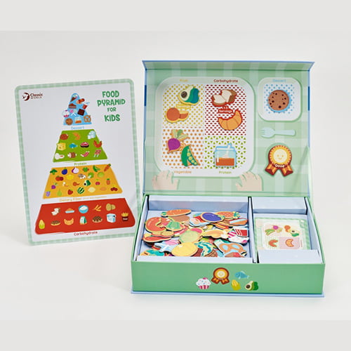 •  Είναι ένα όμορφο μαγνητικό κουτί – παζλ για να μάθει το παιδί σχετικά με την διατροφή όπως υδατάνθρακες, λαχανικά, πρωτεϊνες και φρούτα. Τα παιδιά μπορούν να τοποθετήσουν τα μαγνητάκια στην περιοχή του πιάτου με βάση το χρώμα και να μάθουν την κατηγορία του. Μπορούν επίσης να μάθουν πως να κάνουν μια ισορροποιημένη διατροφή. Περιέχει 60 τεμάχια.
